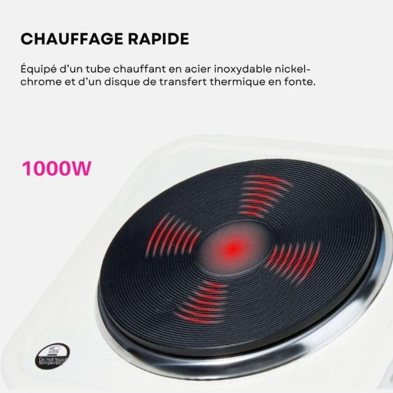 استمتع بالطهي السريع والفعال مع لوح التسخين 1000 واط، المصمم للتسخين السريع والمتساوي.