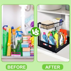 قم بزيادة مساحة مطبخك مع هذا المنظم الأنيق تحت الحوض الذي يحتوي على سلتين منزلقين للوصول السهل إلى مستلزماتك.