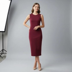 فستان ميدي بدون أكمام بلون بورغندي أنيق