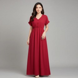 تألقي بأناقة مع هذا الفستان الماكسي البورغندي الأنيق، المثالي لأي مناسبة. تصميمه المتدفق ولونه الغني يجعله عنصرًا أساسيًا في خزانة ملابسك.
