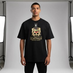 ارفع من أسلوبك مع هذا التي شيرت الأسود الأنيق الذي يتميز بطباعة جرافيك لافتة. مثالي للخروج غير الرسمي أو لإحداث بيان جريء.