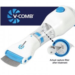 LiceTec V-Comb هو جهاز ثوري مصمم للتعامل مع الصئبان والبيض بسهولة وكفاءة. يجمع هذا الأداة المبتكرة بين طريقة المشط التقليدية وشفاط قوي، مما يرفع بلطف الصئبان والبيض إلى فلتر التقاط دون استخدام مواد كيميائية ضارة. آمن لجميع أنواع الشعر والأعمار، يضمن V-Comb تجربة علاج نظيفة ومريحة. تصميمه المريح ووظيفته السهلة الاستخدام تجعله ضرورة للعائلات التي تبحث عن حل فعال لمشكلة الصئبان.
