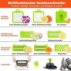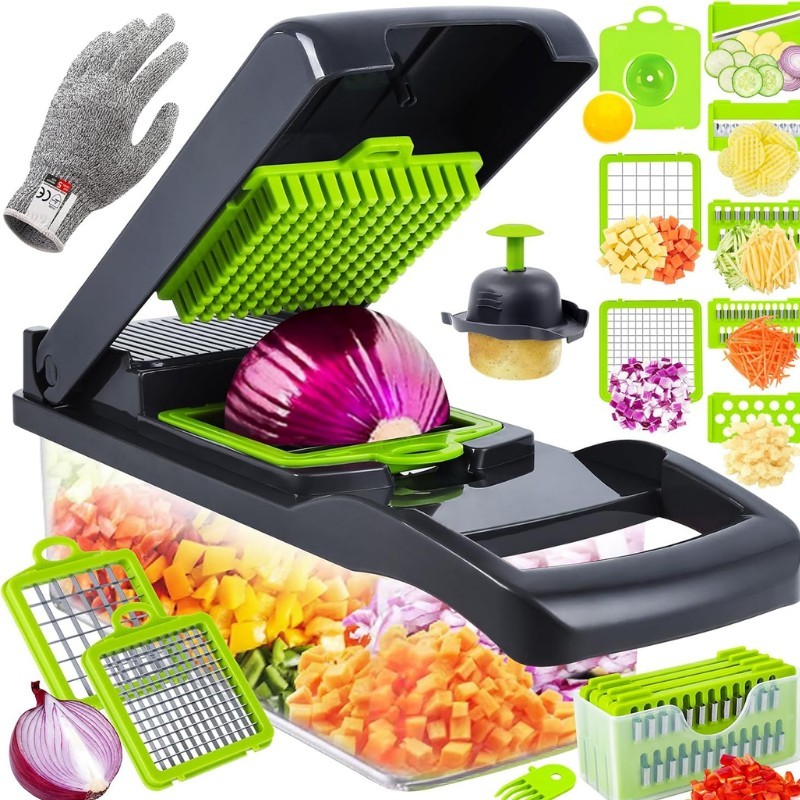 قم بفرم وقطع وشريحة خضرواتك المفضلة بسهولة باستخدام هذه الأداة المطبخية المتعددة الاستخدامات. تشمل عدة شفرات وقفاز أمان لتجربة طهي سلسة.
