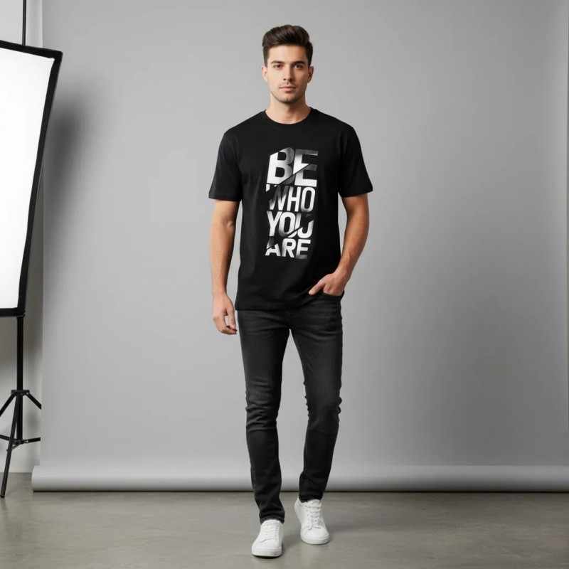يتميز هذا التي شيرت المريح والعصري برسمة جريئة 'كن من أنت'، مثالي لإحداث تأثير. مصنوع من مواد عالية الجودة، فهو مثالي للارتداء غير الرسمي ويوفر تناسبًا رائعًا لأي مناسبة.
