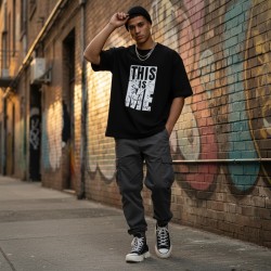 This urban streetwear graphic t-shirt features a bold and eye-catching design, making it a must-have for fashion-forward individuals. Made from high-quality cotton, it ensures comfort and durability. Ideal for pairing with jeans or cargo pants for a relaxed and trendy look.