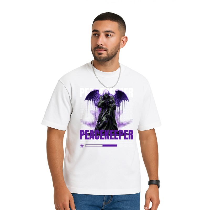 The Peacekeeper Graphic T-Shirt offers a comfortable fit and a striking design, perfect for casual outings or making a statement. Made from high-quality materials, this t-shirt ensures durability and style. Wear it to showcase your personality and stand out from the crowd.