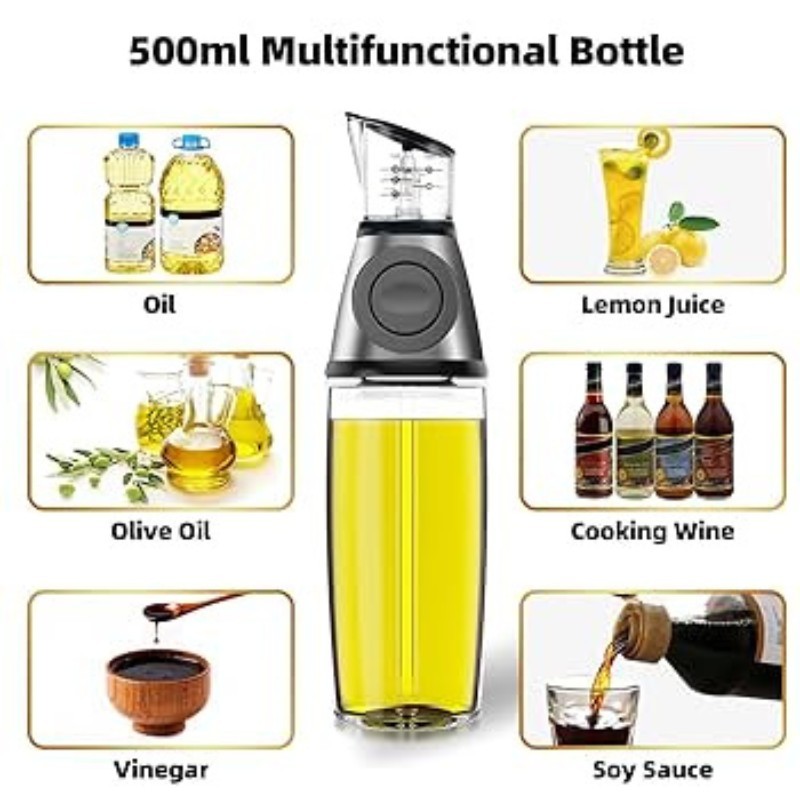 Améliorez votre cuisine avec cette bouteille multifonctionnelle de 500ml, parfaite pour stocker et mesurer divers liquides comme l'huile, le vinaigre, et plus encore.