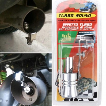Transformez le son d'échappement de votre véhicule avec le sifflet Turbo-Sound. Facile à installer, il crée un effet de sifflement semblable à un turbo.