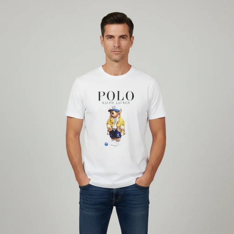 Adoptez l'élégance décontractée avec ce T-shirt Polo Ralph Lauren arborant le graphique emblématique de l'ours. Parfait pour ajouter une touche ludique à votre style quotidien.